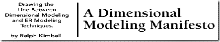 Dimensional modeling (DM) is the name of a logical design technique often used for data warehouses. It is different from, and contrasts with, entity-relation modeling (ER). This article points out the many differences between the two techniques and draws a line in the sand. DM is the only viable technique for databases that are designed to support end-user queries in a data warehouse. ER is very useful for the transaction capture and the data administration phases of constructing a data warehouse, but it should be avoided for end-user delivery.